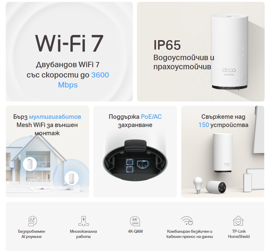 Софтуерни функции | Advanced Features • Reboot Schedule • Tapo/Kasa Onboarding • IoT network & Device Isolation • Static Routing Function • Node/Band Connection Preference |