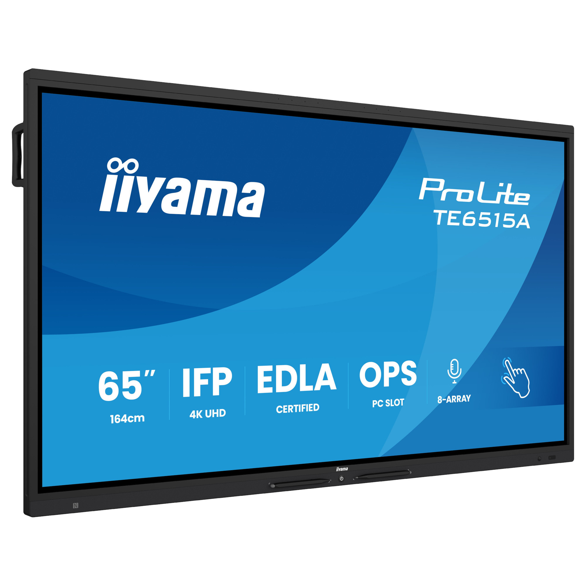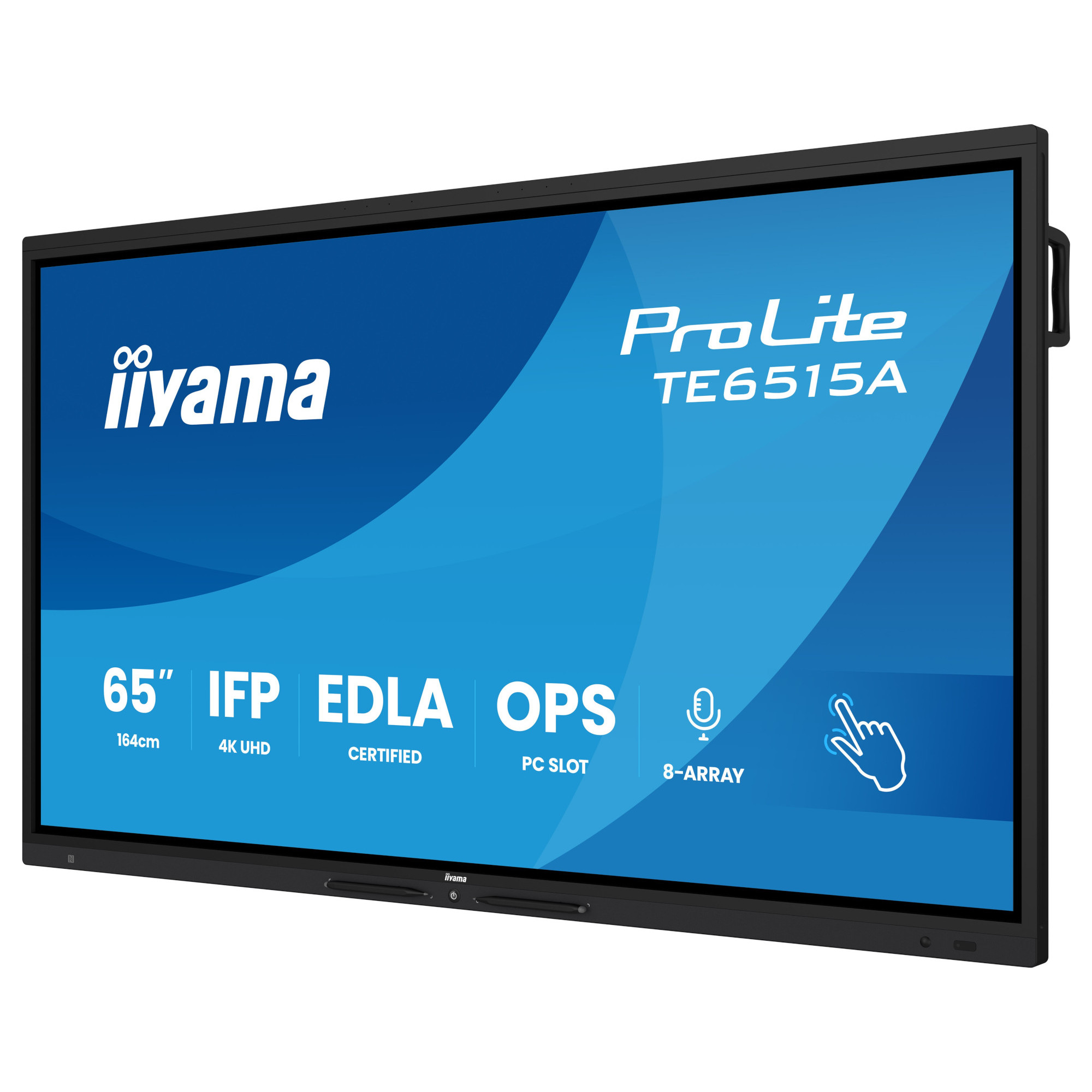 Дисплей IIYAMA TE6515A-B1AG, 64.5'' IPS panel, Google EDLA, AG, UHD 3840x2160, 550cd/m2, 1200:1, 8ms, DeepContrast-IR+, 2x HDMI, DP, USB-C, RS232c, 2x LAN, 3x USB, USB-C out, HDMI out, Mic, Speakers, OPS slot, Android 14, iiWare 21E, Octa Core, 16GB, 128GB, WiFi, BT, Sensors, Black